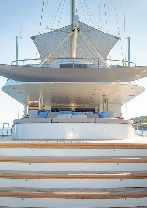 Her Main Deck is able to comfortably seat 12 guests for an al-fresco diner, and all can enjoy her wonderful sun pads set on the aft.