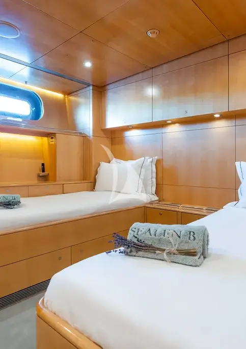 In keeping with her sleek lines, SEALEN B's has been finished to a high standard and can comfortably accommodate 8 guests thanks to her newly appointed 4th stateroom. All rooms enjoy Sonos and Apple TV and the full beam master stateroom and ensuite offers exceptional space and comfort.