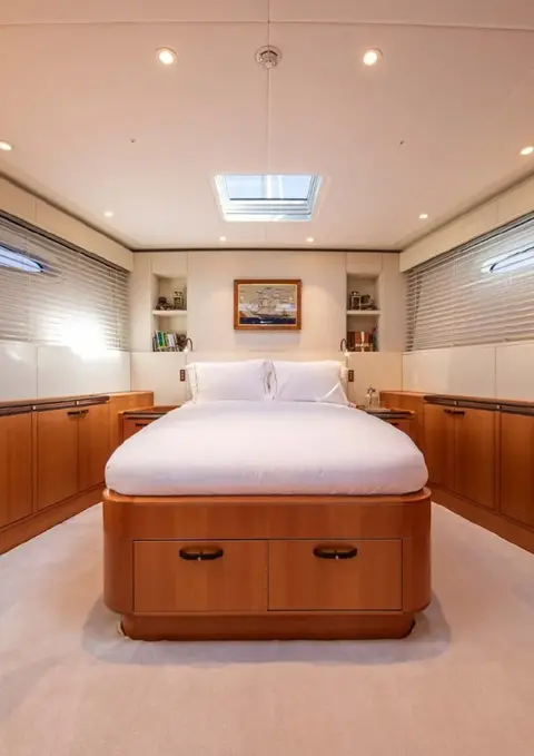 Inside, MINI Y offers a contemporary and welcoming interior designed for comfortable cruising. Accommodation is arranged for four guests in two cabins, creating an intimate and refined onboard experience suited to private owners who value performance sailing without compromising comfort. Separate quarters for two crew ensure efficient onboard operations while maintaining guest privacy.